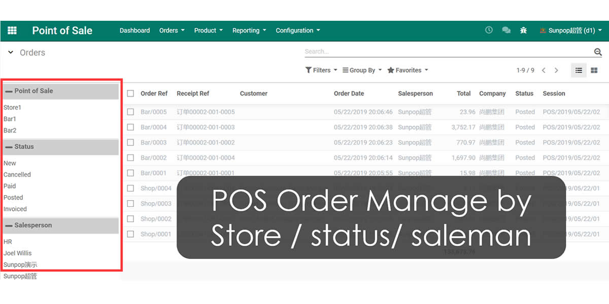 POS product and order.