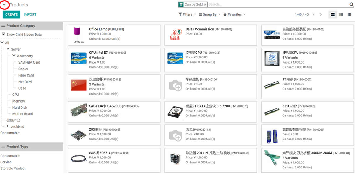 Product by category or type in kanban view