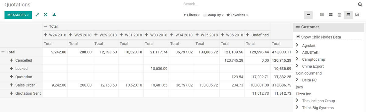 - Easy to show parent children tree for tree, kanban, pivot, graph view.(Note that there would be little different in UI between odoo12,11,10)
