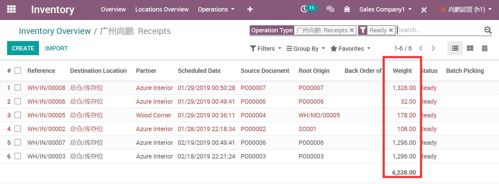 Weight in Stock Inventory Operation Picking and Move