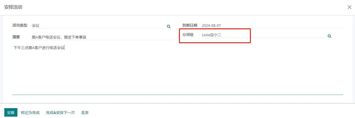 例如您可以点击报价表列的【活动】键,安排【活动】给自己或团队成员。