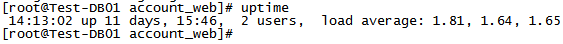 $ uptime 23:51:26 up 21:31, 1 user, load average: 30.02, 26.43, 19.02