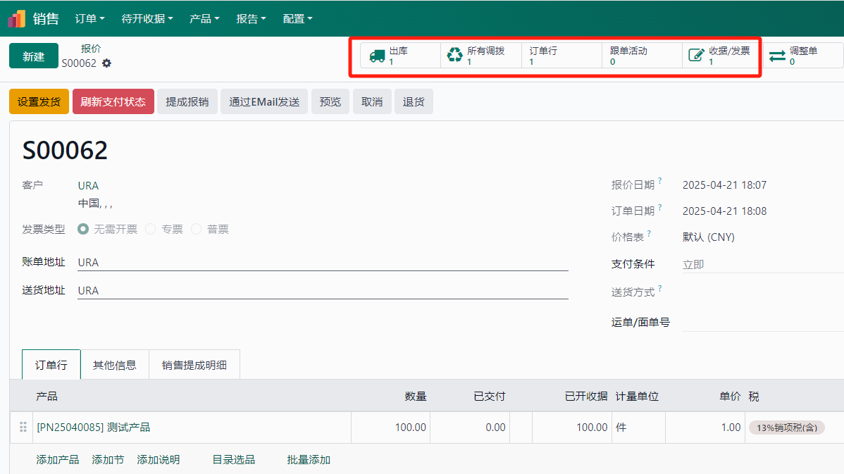 销售订单已确认,系统会生成出库单、草稿收据等相关单据。在未出库、未收款、未进行相关采购的情况下,只需要手动更新产品数量或种类,所有相关单据都会自动更新。