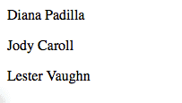 'teachers': ["Diana Padilla", "Jody Caroll", "Lester Vaughn"],