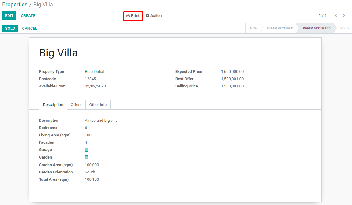 Goal: at the end of this section, we will can print a report that displays all offers for a property.