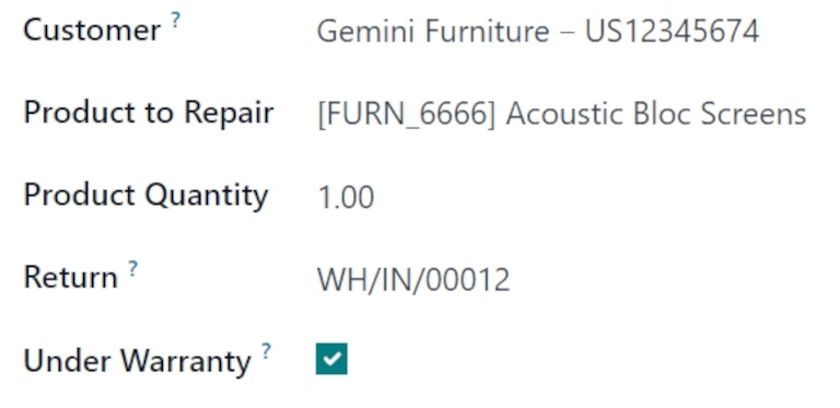 在 Odoo 中,可在 维修 应用程序中追踪客户退回产品的维修情况。维修后,产品可重新交付给客户。