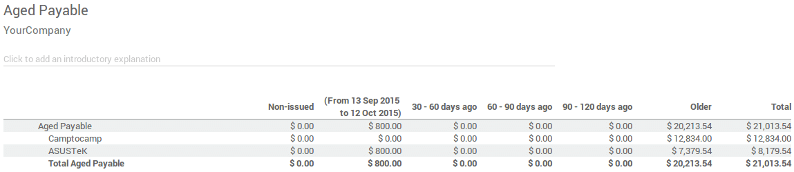 运行* 应付账龄表 [UNKNOWN NODE problematic], 报表显示每个账单信息,信用票据和多付款项, 并显示逾期时间。