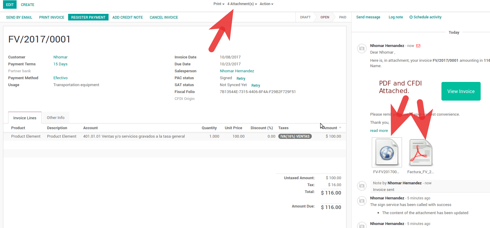 To use the mexican invoicing you just need to do a normal invoice following the normal Odoo’s behaviour.